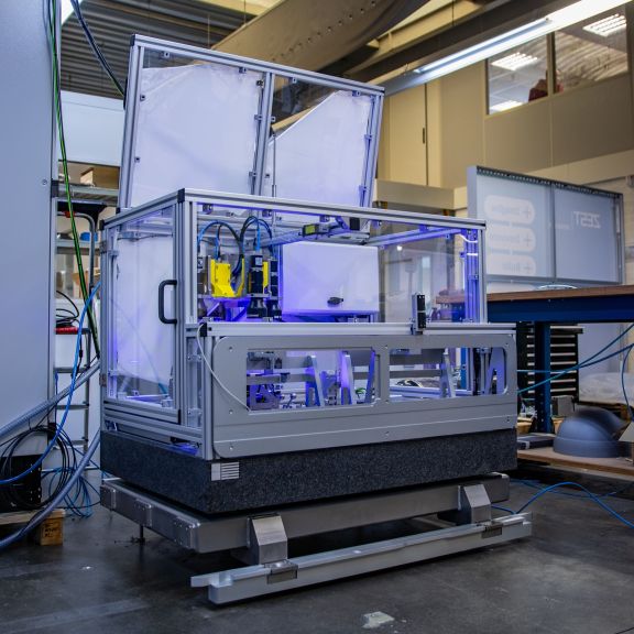 Oplevering van een nieuwe ontwerpverificatietool bij de klant voor nieuwe ontwikkelingen aan hun machine. Dit tool, een hele installatie, bootst op alle vlakken de omstandigheden na waarin de te kwalificeren machine zal komen te werken. Vervolgens verricht het een cyclus van overeenkomen metingen waaruit bepaalt kan worden of het ontwerp de prestaties levert zoals bedacht.