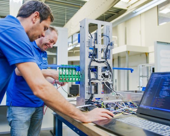Een integrale samenwerking tussen alle belanghebbende en mechatronica disciplines. Denken en doen. Ontwikkelen, bouwen en testen in onze eigen werkplaats.